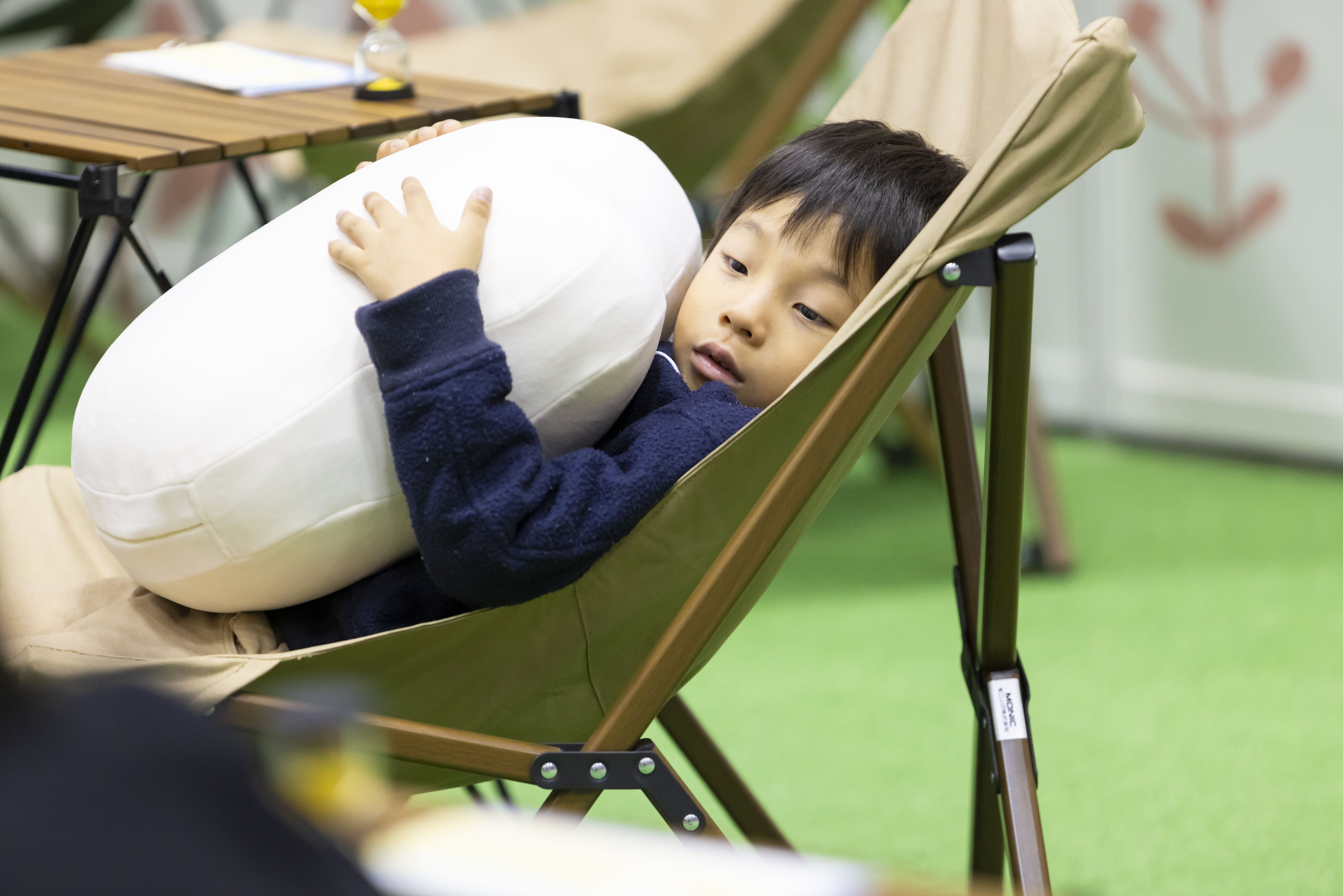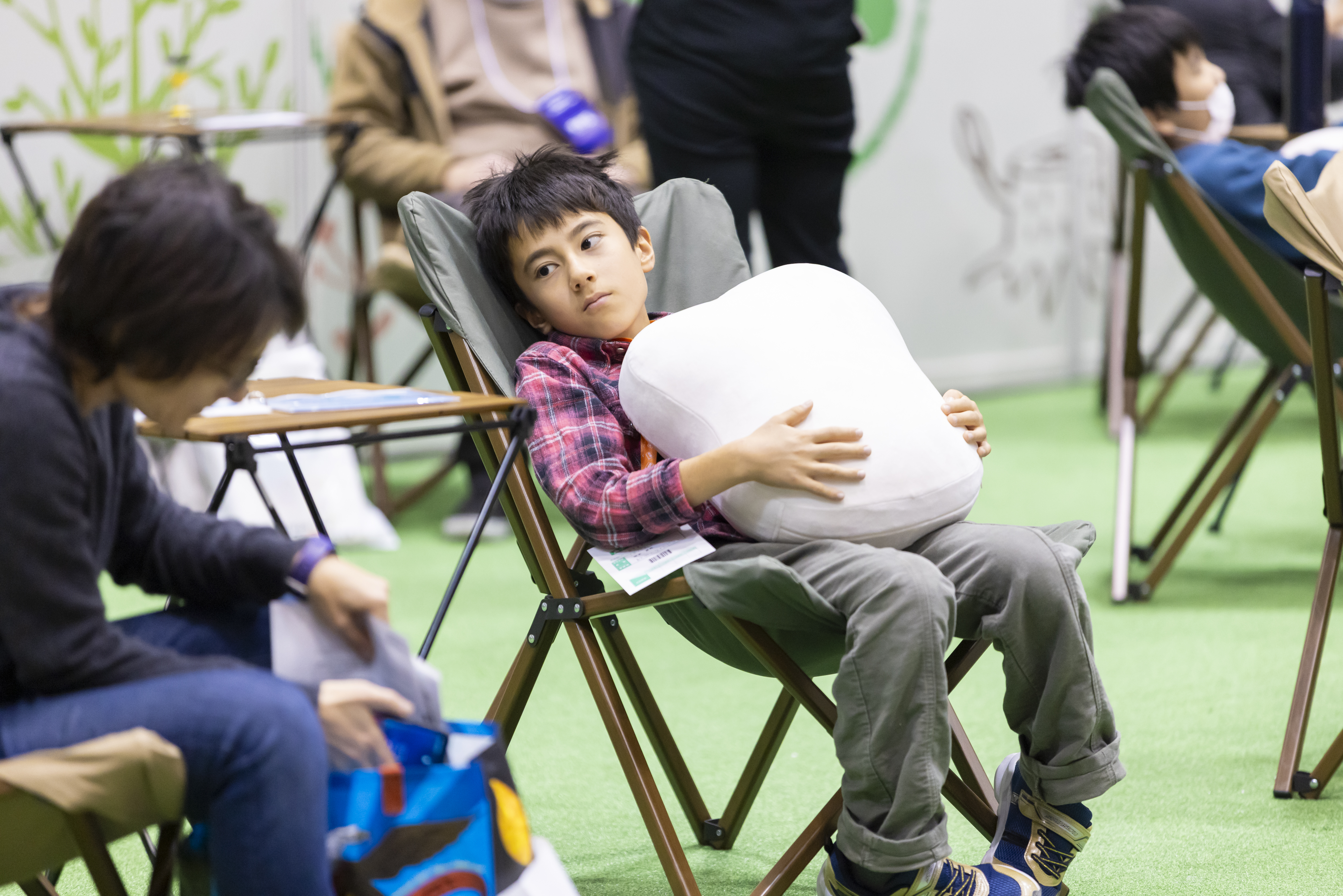 「子どもの付き添いで来ましたが、自分自身も『呼吸に意識を向けて休憩すること』が必要だったんだと気づきました。見た目もかわいくて、会場の雰囲気が和むのも良いですね。長く集中する競技だからこそ、こうした休憩が大切なんだと思います」