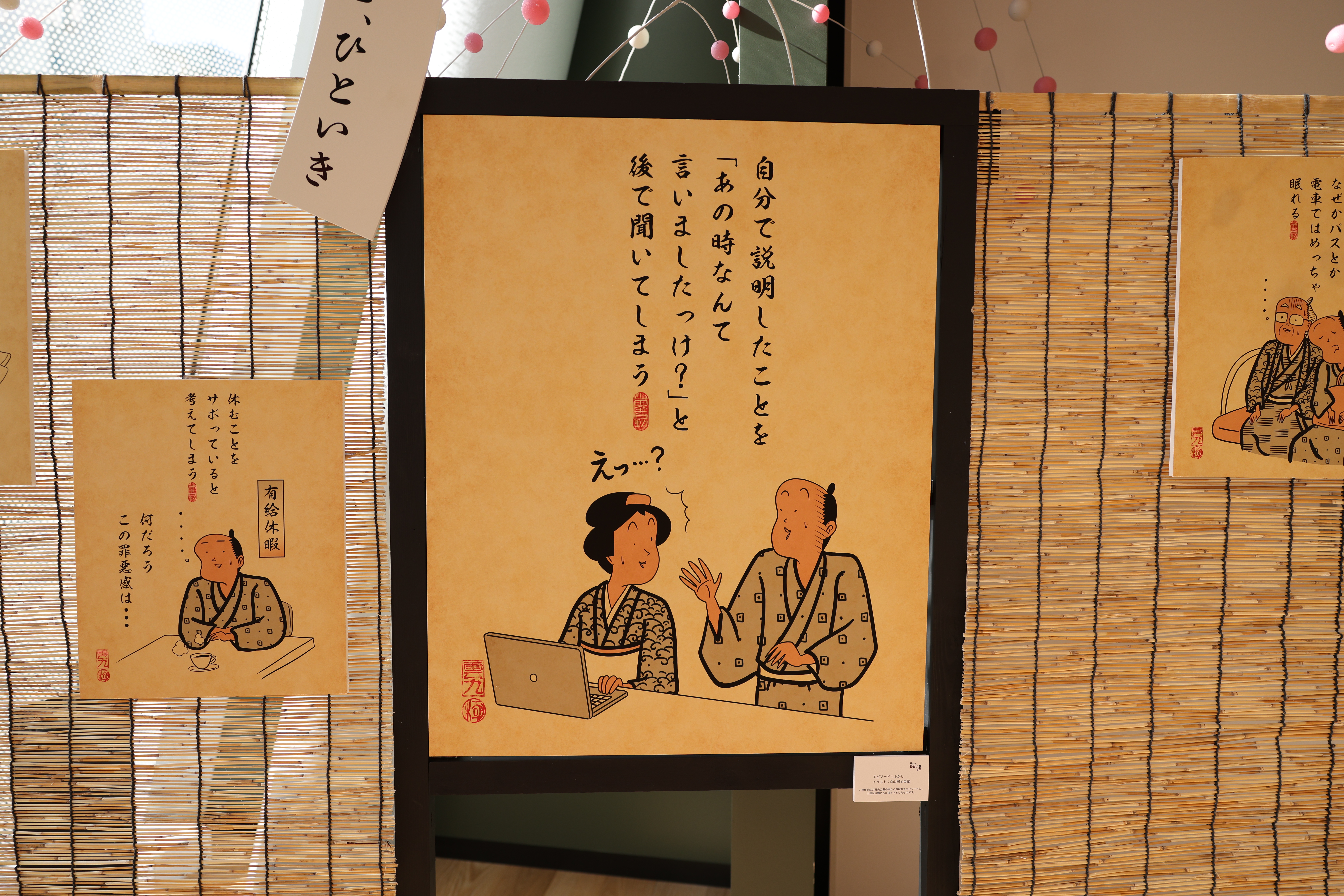 江戸の町人風イラストと、現代社会とのギャップから生まれる独特の世界観が持ち味で、クスっと笑える “あるある”ネタがたくさんの共感を呼んでいます。