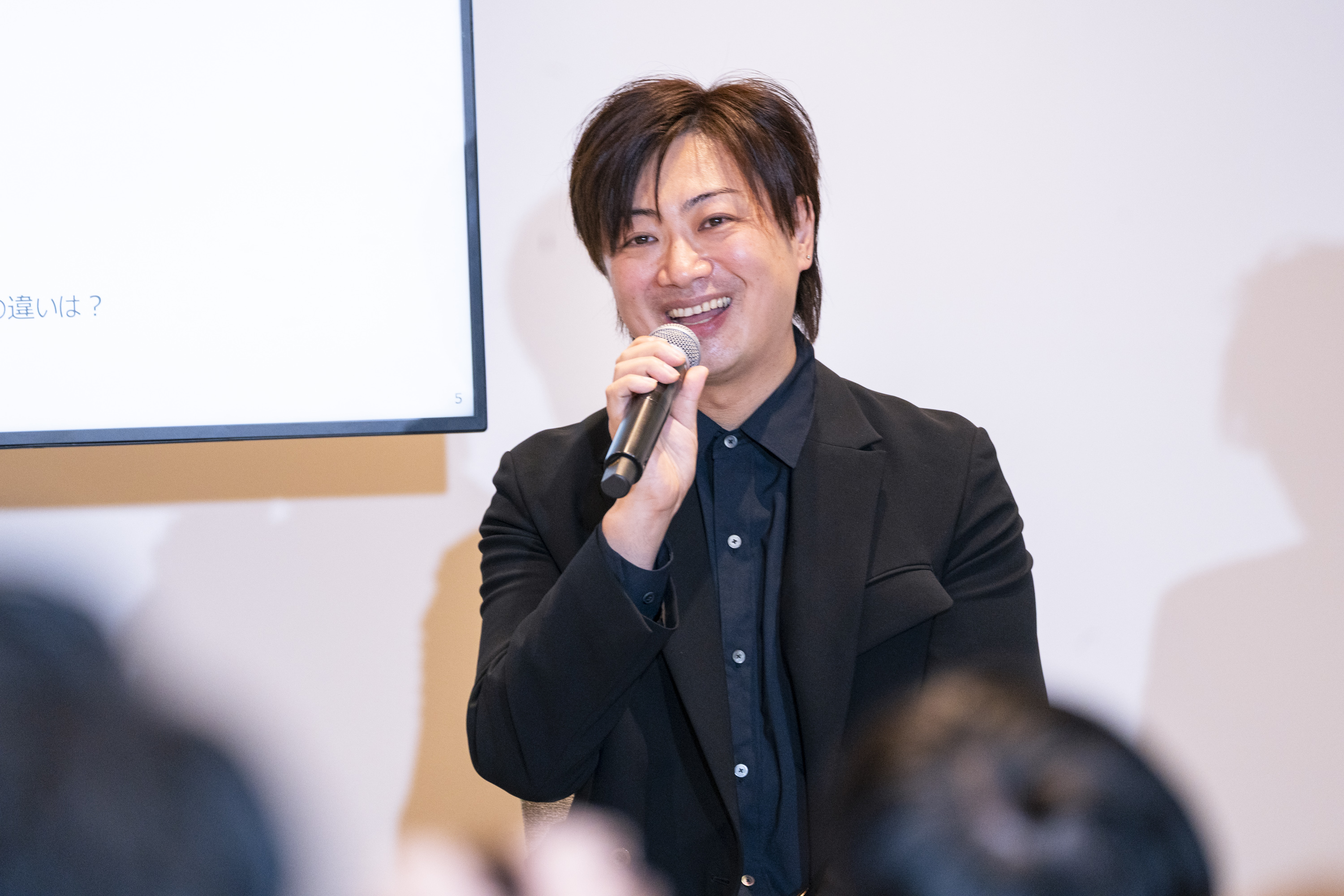 登壇したのは、ボイストレーナーとして活躍する長塚全さん。